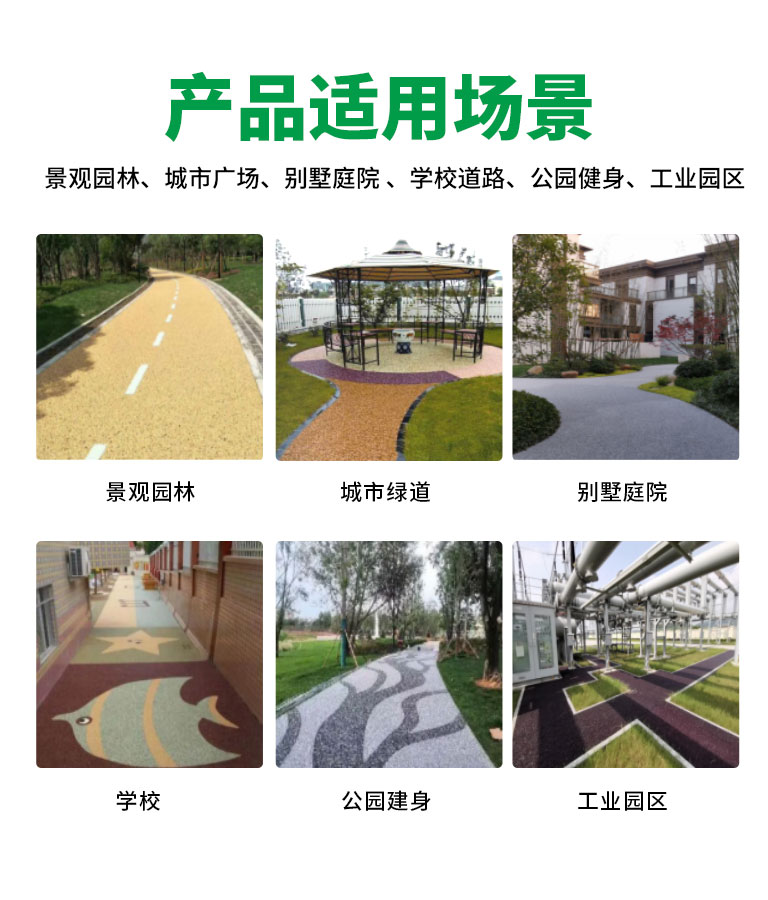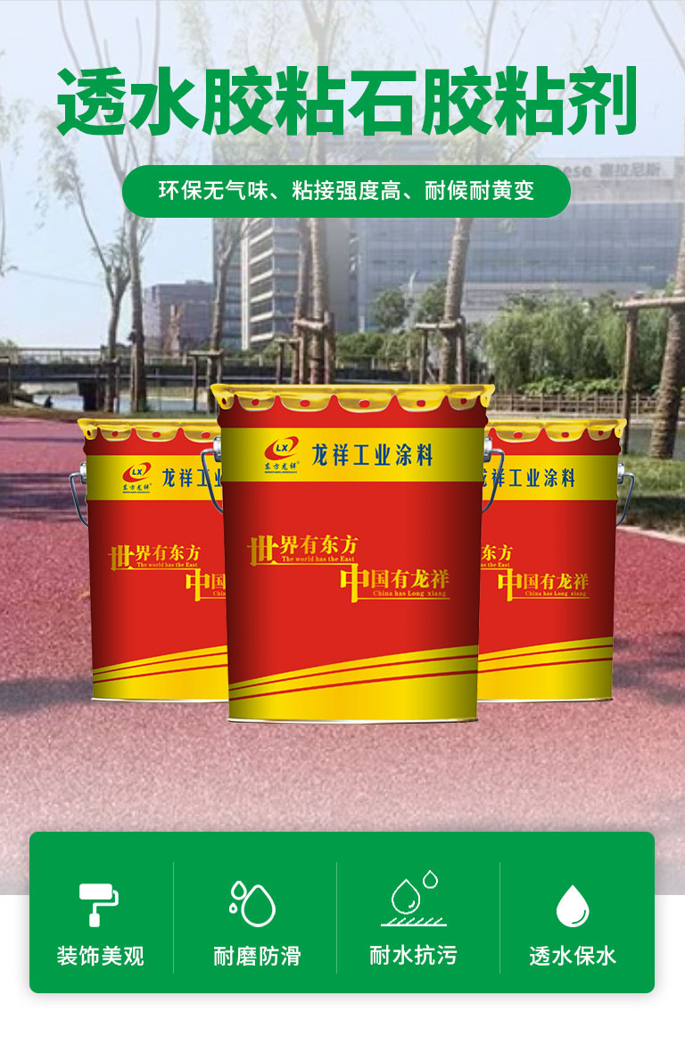 環(huán)保無(wú)氣味、粘接強(qiáng)度高、耐候耐黃變、裝飾美觀、耐磨防滑、耐水抗污、透水保水