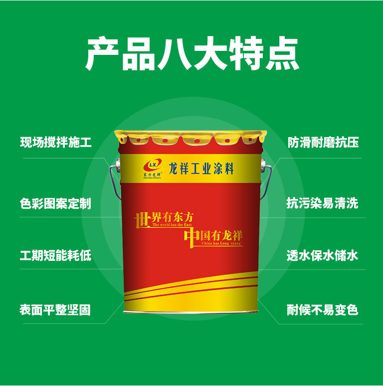 環(huán)保無(wú)氣味、粘接強(qiáng)度高、耐候耐酸堿、透水保水、附著力強(qiáng)、耐磨防滑、不易變色